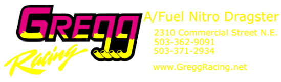 His tuning skills are known for their conservative nature, keeping  his rookie Drivers safe and his parts lasting a LONG, LONG time!  The standing joke is that you NEVER, EVER cut a Zip Tie from the wrong end on Jerry’s team, or he’ll have your HEAD!  We reuse all zip ties and that attitude is representative of the ultra-conservative approach Jerry has taken to A/Fuel racing.  When others through HUGE sums of money at their programs, buying the latest part to fall off the newest CNC Machine, Jerry sticks with what he has, making it work.  And he makes it work!  His career best is a 5.22 ET at 275 MPH with Ashley driving- but that was in the “good ole’ days”, when NHRA allowed 100% Nitro.  Jerry says, “100% Nitro adds 50 IQ points to any Tuner!”  Now, after several drops in our Fuel Percentage, we’re down to 94% by the current NHRA rules, it’s WAY harder to makes these Cars run- especially when it’s hot out!  So, how’s Jerry done on 94%, WITHOUT the “50 IQ Point ‘Bonus’ Points” that used to come naturally by way of running 100% Nitro?  Well, on 94%, with Courtney in the Car, his Career Best is a 5.23 ET at 272 MPH!!  PHENOMENAL performance out of a Living Legend (That’d be Jerry, – Courtney will earn her Stripes in the Years to Come! J ) whom we at Gregg Racing are TRULY HONORED to have helping us out this weekend at Woodburn!   Come be a part of the Program and meet Jerry if you haven’t already- you’ll be glad you did!!