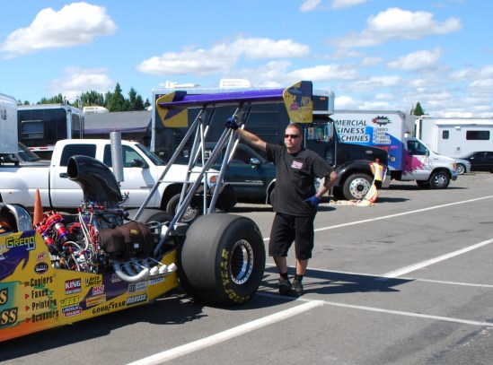 I have chosen not to travel this year, owing to substantial investments made into our Racing Program this year.  An announcement of major significance will follow later this week.  I would first like to speak to an event that occurred this past Weekend at a West Regional event held at Mission Raceway Park, Mission BC Canada.  My Key Crew Guy, Stan Wise, went to help another race team- the Dave Germain Top Alcohol Funny Car Team.  Dave has been a friend for many years and needed a hand from a seasoned Crew Dude.  Getting Stan to agree to go racing is much like getting an alcoholic to take another drink- not too tough!  🙂
