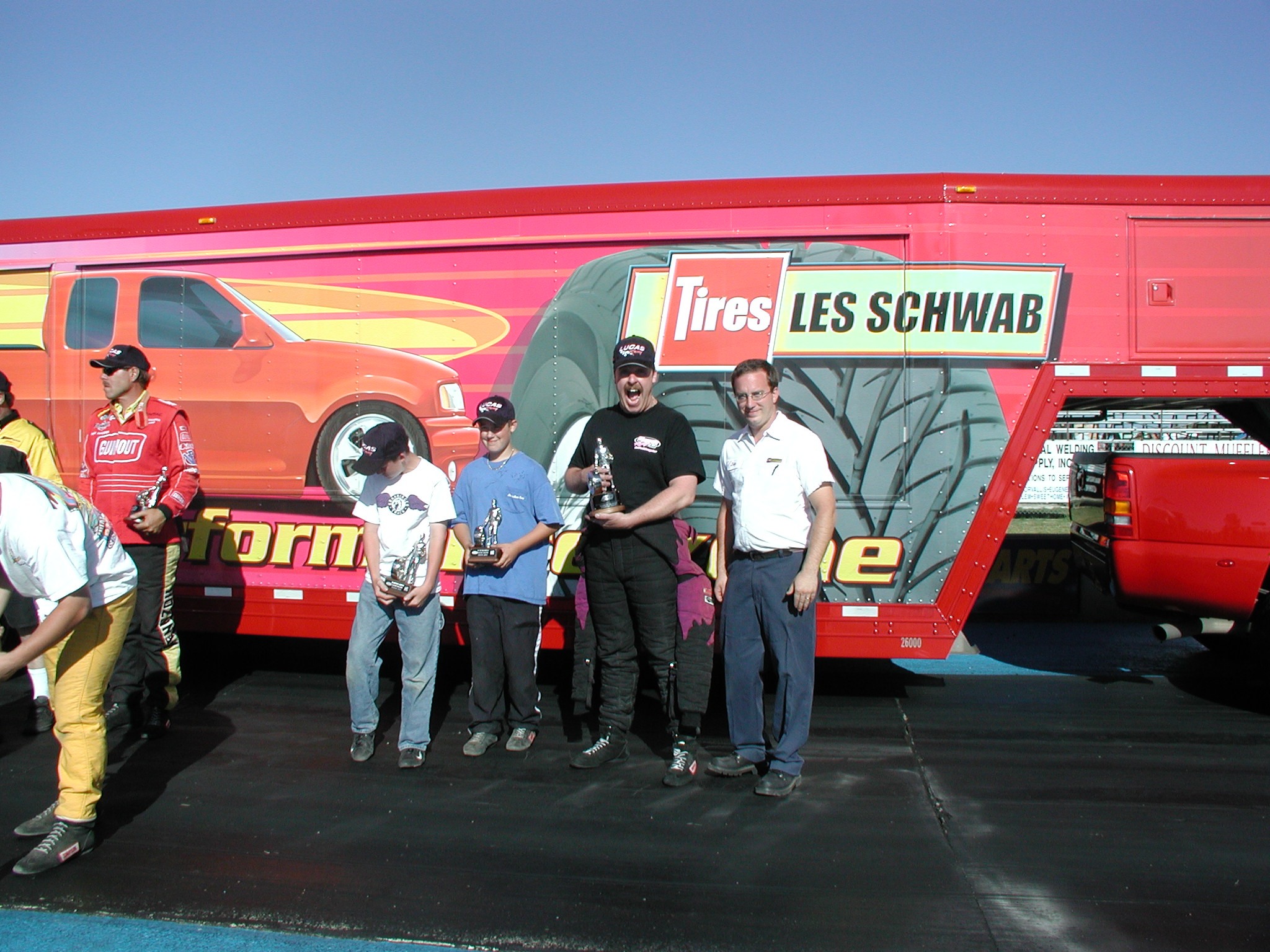 Fast forward to ’92. I’d just purchased CBM and I was visiting a copier customer of ours- Parker’s Auto Electric- when I happened to notice they had a gorgeous blue Top Alcohol Funny Car in the back of their shop. Now, I’d been pretty much out of the sport for a very long time, but the passion had never really gone anywhere- it was just looking for an outlet. I begged the Parker clan for an opportunity, telling them I’d clean anything, do anything, to be involved with their program. They must have felt sorry for me, as they let me help! I learned a TON from Wayne, Russ & Randy over the next few years about how a real race car is properly prepared and I had the opportunity to race up and down the West Coast as they grew in the sport, gaining sponsorship from the Dairy Farmers of Oregon and winning a National Event at Seattle in the late ‘90’s.